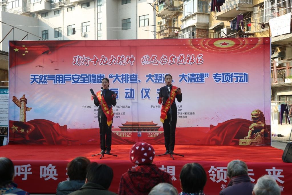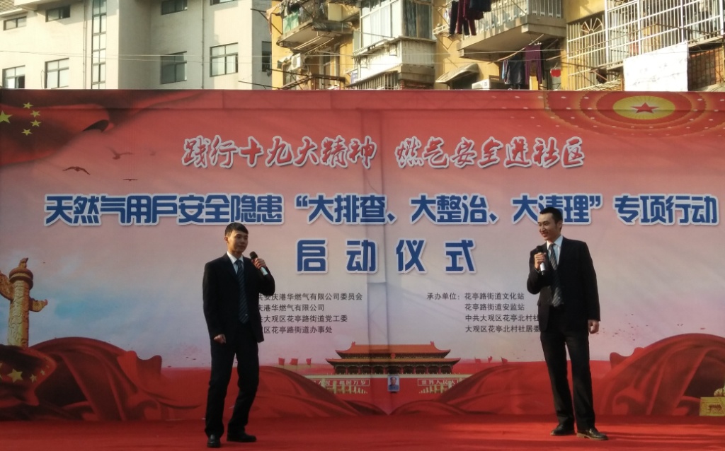 為認(rèn)真貫徹落實(shí)市住房城鄉(xiāng)建設(shè)委、安監(jiān)局、公安消防支隊(duì)三部門聯(lián)合發(fā)出的《關(guān)于開展城區(qū)天然氣用戶安全隱患專項(xiàng)整治工作的通告》(下稱“專項(xiàng)整治通告”)精神,12月12日,針對全市民用天然氣客戶戶內(nèi)安全隱患“大排查、大整治、大清理”專項(xiàng)行動啟動儀式在我市花亭北村廣場舉行。這是迄今為止整改力度最大、涉及范圍最廣的一次燃?xì)獍踩[患集中大清理,也是安慶港華踏實(shí)踐行黨的“十九大精神”,推動“十九大精神”在工作中落地生根的具體體現(xiàn)。