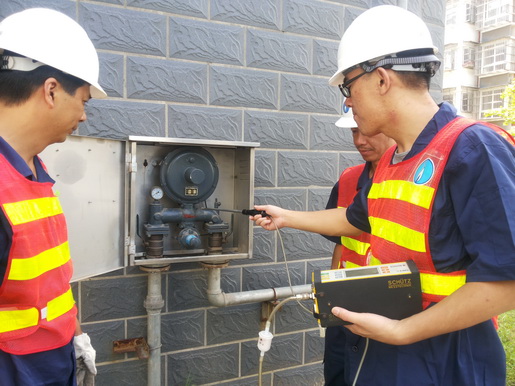 此次應(yīng)急演練模擬在市熱電路某小區(qū),管網(wǎng)巡檢人員進(jìn)行日常巡檢時(shí),發(fā)現(xiàn)該小區(qū)樓棟調(diào)壓器有嚴(yán)重漏氣現(xiàn)象,巡檢人員第一時(shí)間控制住現(xiàn)場(chǎng),拉起警示帶,警示過(guò)往行人與車輛遠(yuǎn)離事故現(xiàn)場(chǎng),嚴(yán)防燃?xì)庑孤┓秶鷥?nèi)有明火產(chǎn)生,同時(shí)按照既定的程序向部門(mén)負(fù)責(zé)人報(bào)告。接到報(bào)警后,部門(mén)負(fù)責(zé)人以及搶險(xiǎn)班組人員即刻到達(dá)事故現(xiàn)場(chǎng),經(jīng)現(xiàn)場(chǎng)確認(rèn),事故等級(jí)為Ⅱ級(jí),并立即啟動(dòng)事故應(yīng)急預(yù)案。