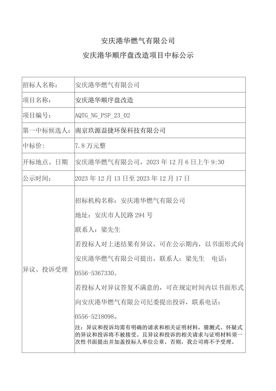 安慶港華順序盤改造項目中標(biāo)公示