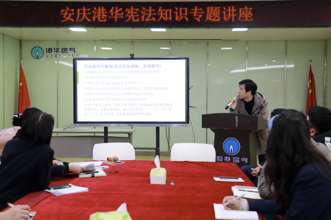 組織20余名員工代表開(kāi)展憲法專(zhuān)題講座,以《中華人民共和國(guó)憲法》《勞動(dòng)法》《城鎮(zhèn)燃?xì)夤芾項(xiàng)l例》及誠(chéng)信合規(guī)相關(guān)法律法規(guī)的解讀和案例詳解為主要內(nèi)容,進(jìn)行法律宣講。
