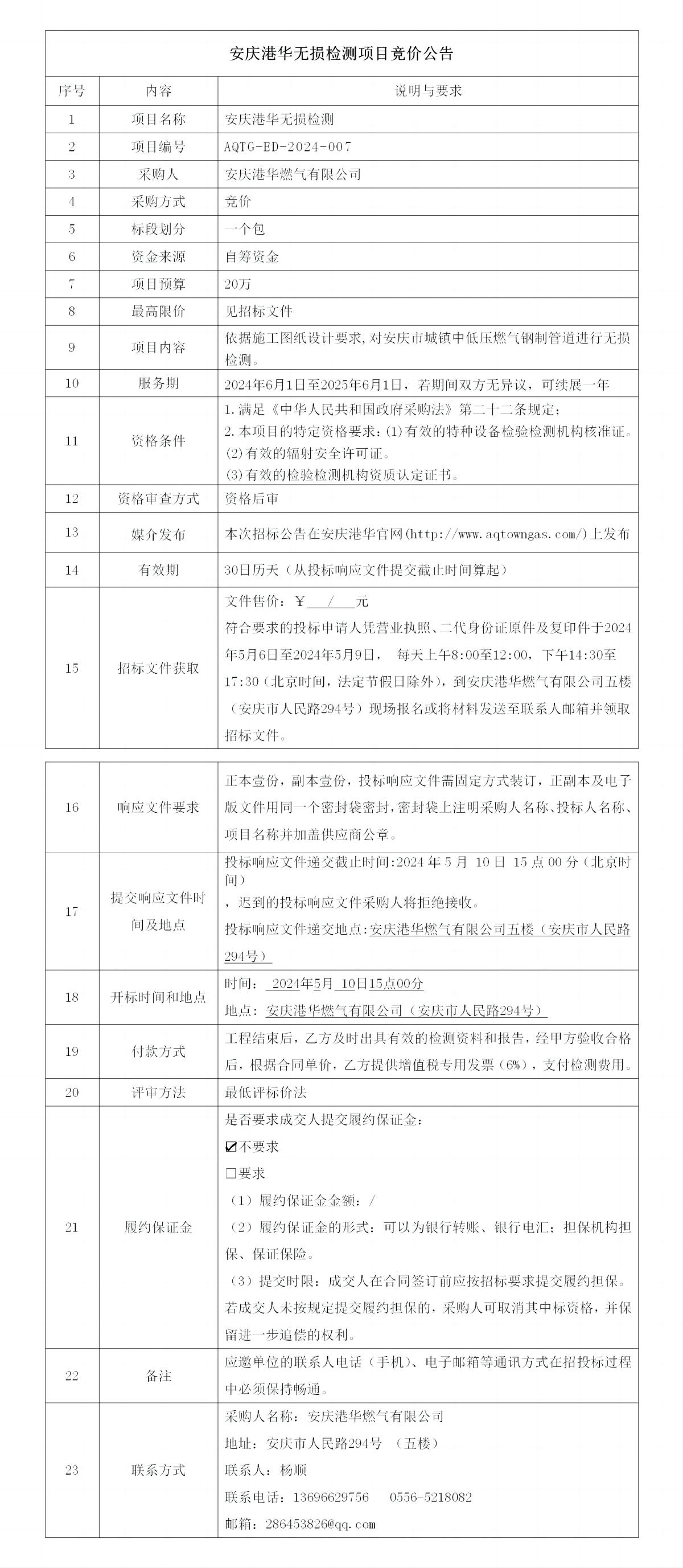 安慶港華無(wú)損檢測(cè)項(xiàng)目競(jìng)價(jià)公告