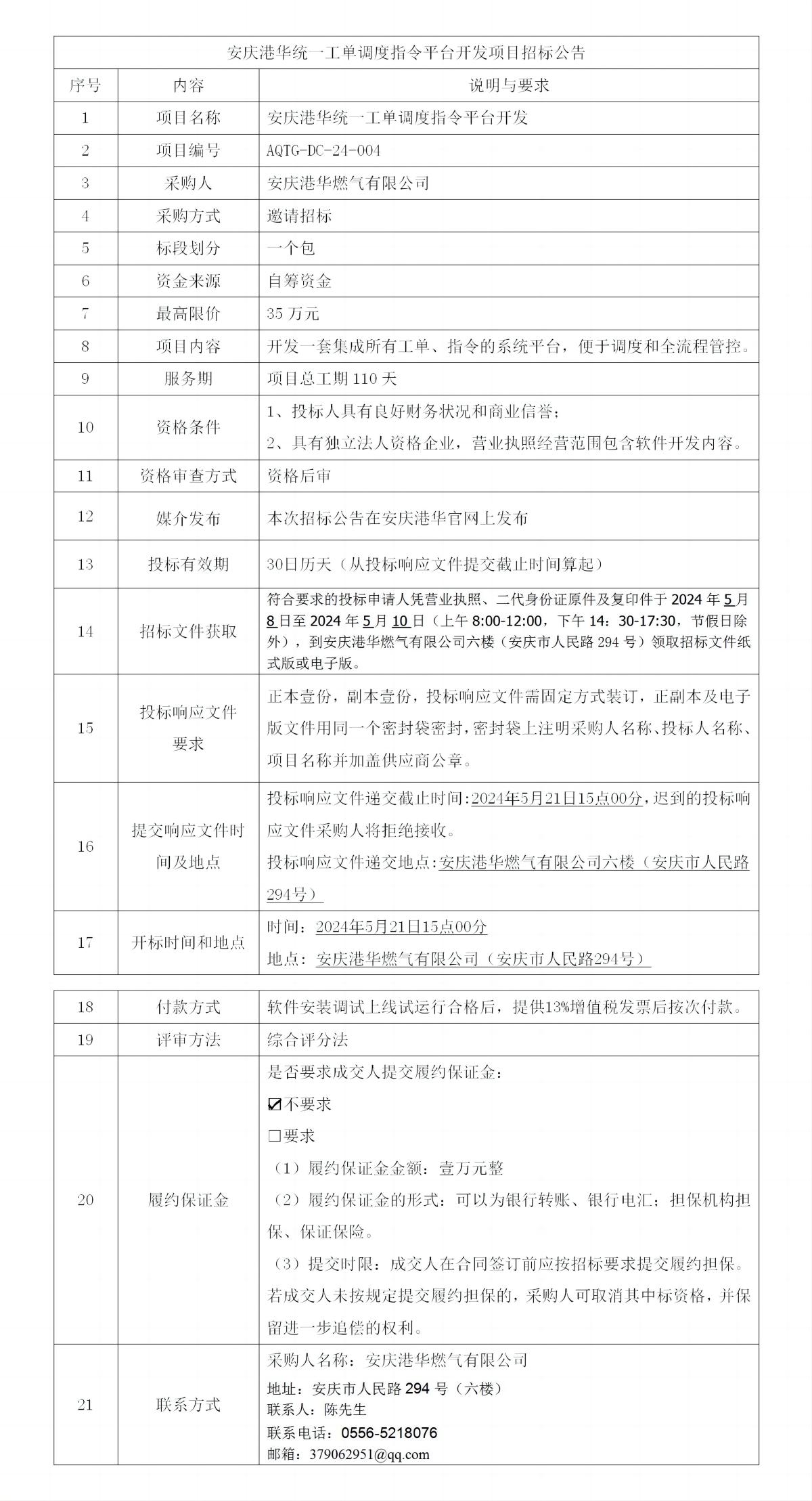 安慶港華統(tǒng)一工單調(diào)度指令平臺(tái)開(kāi)發(fā)項(xiàng)目招標(biāo)公告