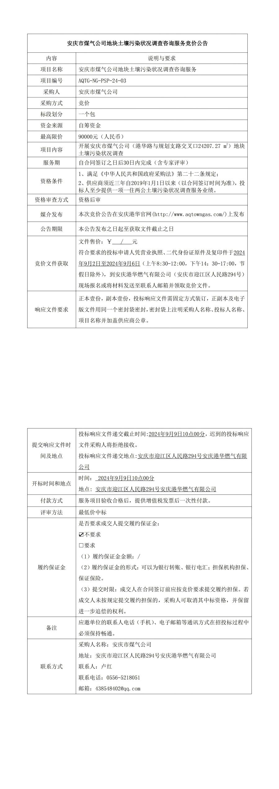 安慶市煤氣公司地塊土壤污染狀況調(diào)查咨詢服務(wù)競(jìng)價(jià)公告