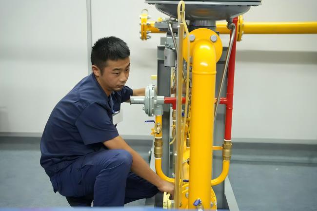 本次競(jìng)賽分為理論考試和實(shí)操競(jìng)賽兩大部分,內(nèi)容涵蓋技術(shù)方案編制、蒙眼拆裝、工藝系統(tǒng)檢查及故障排除等多項(xiàng)考核內(nèi)容。理論考試主要檢驗(yàn)參賽選手對(duì)燃?xì)夤艿勒{(diào)壓相關(guān)知識(shí)的掌握情況,而實(shí)操競(jìng)賽則通過(guò)模擬真實(shí)工作環(huán)境,全面考察選手的實(shí)際操作能力和應(yīng)對(duì)突發(fā)情況的能力。在實(shí)操競(jìng)賽中,選手們需要在規(guī)定時(shí)間內(nèi)完成蒙眼拆裝切斷閥、排查調(diào)壓器故障并恢復(fù)管道壓力等任務(wù),整個(gè)過(guò)程需準(zhǔn)確無(wú)誤的完成144個(gè)零件的拆裝,并一次性調(diào)試合格。比賽現(xiàn)場(chǎng)氣氛緊張而熱烈,選手們?nèi)褙炞?、?zhēng)分奪秒,展現(xiàn)了燃?xì)庑袠I(yè)職工良好的職業(yè)素養(yǎng)和團(tuán)隊(duì)協(xié)作精神。