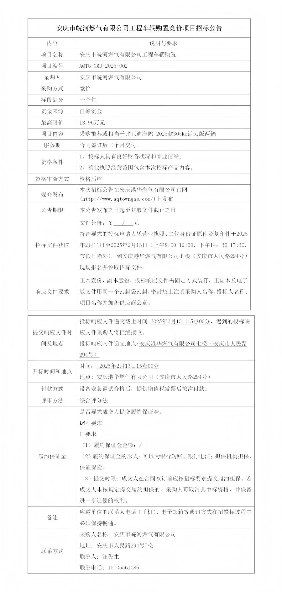 安慶市皖河燃?xì)庥邢薰竟こ誊囕v購置競價項目招標(biāo)公告