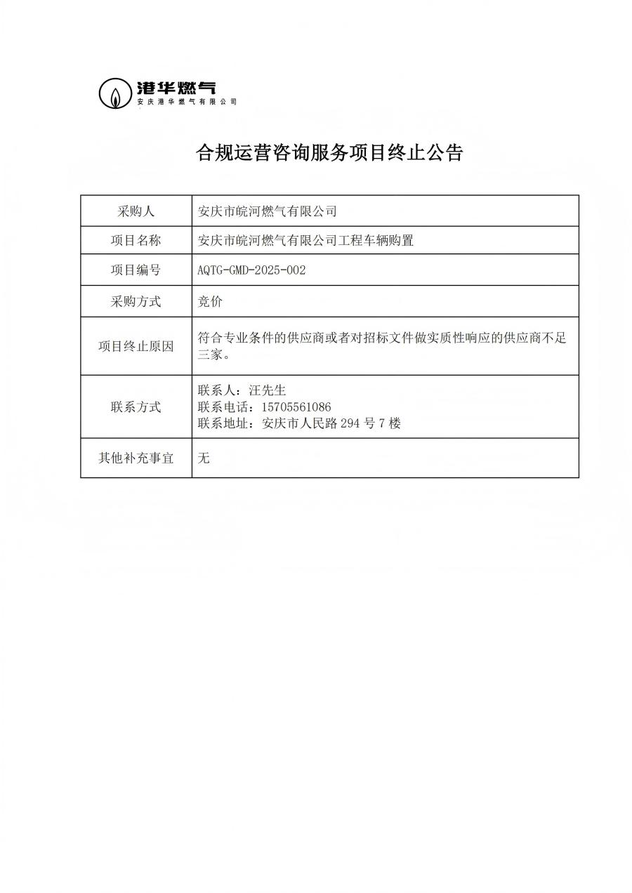 合規(guī)運(yùn)營咨詢服務(wù)項目終止公告