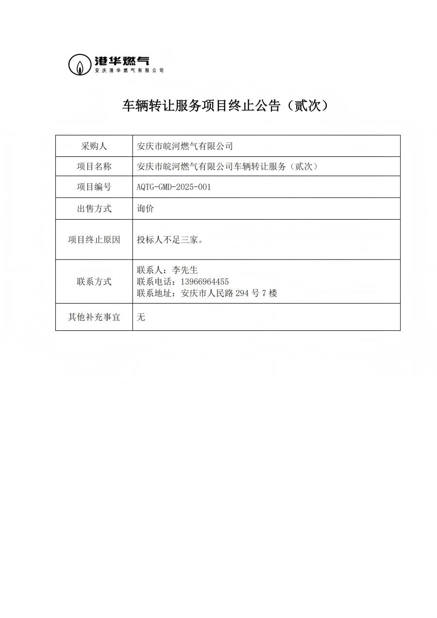 車輛轉(zhuǎn)讓服務(wù)項目終止公告(貳次)