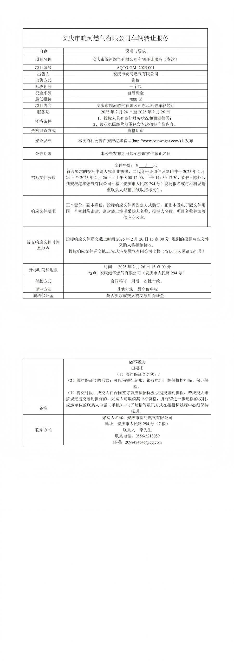 安慶市皖河燃氣有限公司車輛轉(zhuǎn)讓服務(wù)
