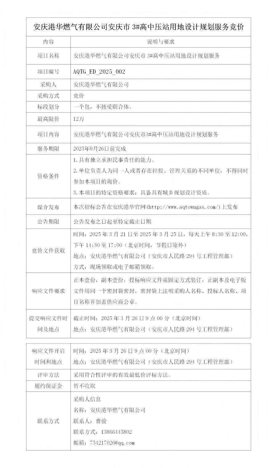安慶港華燃?xì)庥邢薰景矐c市3#高中壓站用地設(shè)計(jì)規(guī)劃服務(wù)競(jìng)價(jià)