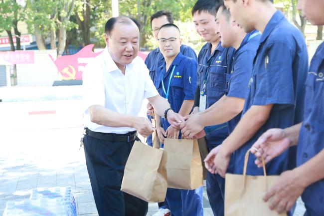 在活動現(xiàn)場,王耀武與一線安檢人員親切交談,詳細詢問了他們的工作強度、防暑措施以及居民對燃氣安全服務(wù)的反饋情況,并對工作人員頂烈日、冒酷暑堅守崗位,細致開展燃氣安檢、安全知識宣傳等工作給予了高度肯定。他強調(diào),燃氣安全關(guān)乎千家萬戶的生命財產(chǎn)安全,大家的每一份細致與堅守,都是在為安慶市民筑牢安全防線。同時囑咐大家在高溫環(huán)境下要注意科學作息,注意自身防護。隨后還將精心準備的防暑降溫用品一一送至他們手中。