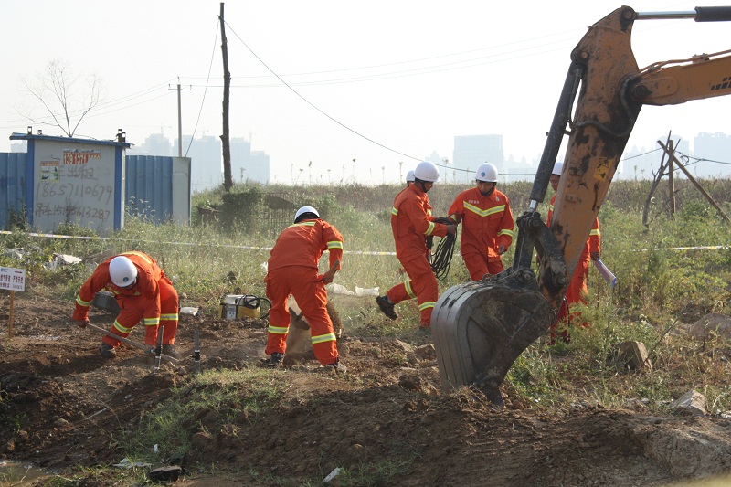 近年來,隨著城市基礎(chǔ)設(shè)施及老舊小區(qū)改造工作不斷加快,工程建設(shè)對地下天然氣管網(wǎng)的安全運(yùn)行帶來的威脅亦不斷加大?,F(xiàn)場模擬輝煌路中壓A級PE160燃?xì)夤艿辣坏谌绞┕挝黄茐模矐c港華維搶修中心在接到搶險(xiǎn)指令后,迅速派出專業(yè)搶險(xiǎn)隊(duì)伍于30分鐘內(nèi)趕到事故現(xiàn)場,并有條不紊地開展事故現(xiàn)場控制、疏散警戒、現(xiàn)場信息傳遞、事故逐級報(bào)告、消防聯(lián)動(dòng)配合、搶險(xiǎn)方案制定、儀器裝備操作、停氣復(fù)供、事故現(xiàn)場調(diào)查等程序,通過多部門配合,最終成功控制險(xiǎn)情并修復(fù)了受損管道,恢復(fù)正常供氣。