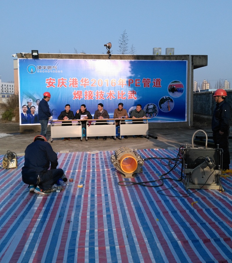 培訓通過案例分析等方式詳細講解了焊接法律法規(guī)、PE管生產工藝、焊接技術及注意事項,并就焊接關鍵點進行了集體探討。為保證比武活動順利有序開展,現場還成立了由公司總經理王政文、運行副總楊善俊、工程副總裴曉斌及相關專家組成的評委組。評委組通過抽簽的方式隨機確定各參賽人員的具體參賽項目(熱熔和電熔兩種焊接方式),并從焊接質量、作業(yè)時間等多個方面對所有選手進行綜合評判、打分與裁定。