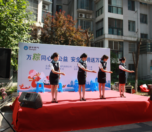 當(dāng)日,安慶港華的義工隊(duì)員和“藍(lán)焰”黨員義工們?cè)缭鐏?lái)到炮營(yíng)山社居委轄區(qū)的諧水灣小區(qū),撐帳篷,搭展臺(tái),搬物料,一場(chǎng)以“包粽子、看演出、講安全、傳文明”為主題的文化大餐陸續(xù)上演?;顒?dòng)現(xiàn)場(chǎng)熱鬧非凡,不少用戶正在港華燃?xì)獾摹傲鲃?dòng)服務(wù)車”前排隊(duì)進(jìn)行燃?xì)鈭?bào)裝和繳費(fèi),服務(wù)臺(tái)的工作人員一邊發(fā)放著燃?xì)獍踩麄魇謨?cè),一邊針對(duì)居民的用氣問(wèn)題耐心作答。而廣場(chǎng)正中央搭建的演出舞臺(tái)更是吸引不少居民駐足圍觀,安慶港華燃?xì)夂蜕鐓^(qū)居民聯(lián)合打造的精彩紛呈的文藝表演正在進(jìn)行。既有優(yōu)揚(yáng)的港華企業(yè)歌曲,又有優(yōu)雅的服務(wù)禮儀表演;社區(qū)阿姨們的廣場(chǎng)舞,舞出了歡樂(lè),舞出了自信,來(lái)自轄區(qū)學(xué)校孩子們有模有樣的黃梅戲表演,讓我們看到了傳統(tǒng)戲曲文化的美好傳承;穿插其間的燃?xì)獍踩R(shí)有獎(jiǎng)問(wèn)答更是引得眾人踴躍參與,掌聲、歡呼聲此起彼伏。而臺(tái)下社區(qū)阿姨和港華義工在欣賞精彩文藝演出的同時(shí),還不忘巧手裹粽,不多會(huì),桌上就擺滿了幾百只飄著粽葉香的愛心粽,既弘揚(yáng)了傳統(tǒng)文化,又增進(jìn)了企業(yè)和居民之間的感情,現(xiàn)場(chǎng)呈現(xiàn)出一片文明和諧,奮進(jìn)向上的氛圍。