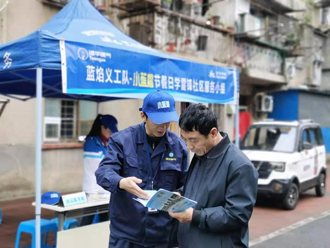 當(dāng)天一大早,“小藍(lán)帽”們就在小區(qū)內(nèi)搭設(shè)起便民服務(wù)站,積極為過往的小區(qū)居民提供灶具免費維修、燃?xì)馐褂脝栴}解答等服務(wù),現(xiàn)場服務(wù)居民50余次。同時,他們還通過擺放安全展示牌、發(fā)放《燃?xì)獍踩脷馐謨浴返刃麄餍问?,進(jìn)一步增強小區(qū)居民安全用氣意識。